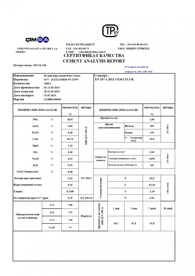 Белый портландцемент Cimsa (Турция)