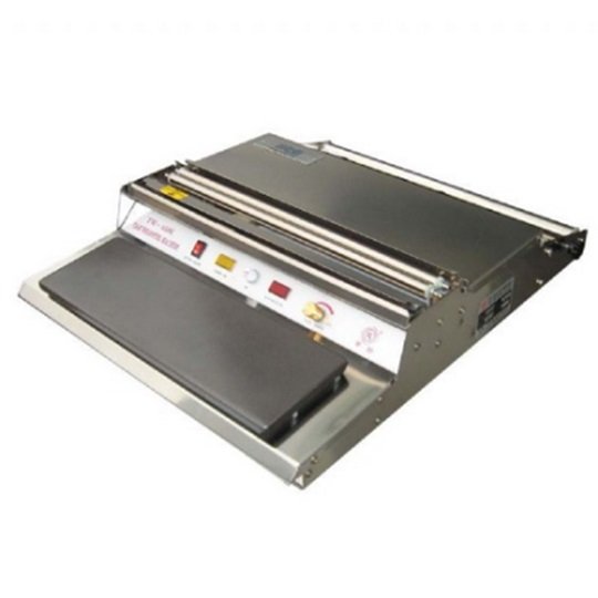 TW-450 горячий стол. Оборудование для упаковки продуктов в пленку, макс.толщина пленки - 25 мкм, макс.ширина рулона пленки - 450 мм, антипригарное тефлоновое покрытие "горячей платформы" и "горячего" ножа.