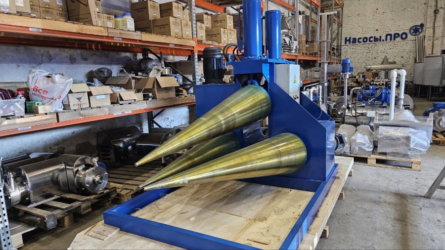 Вальцы конические электрогидравлические для быстрой прокатки конических обечаек (конусов), конических переходов, донышек, ЦКТ и т.д. Конуса получаются с идеальной геометрией (смотрите фото). В комплекте пульт управления.