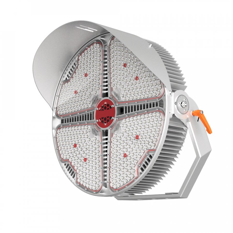 Мачтовый светодиодный прожектор модель R580L-1500W-UN мощностью 1500 Вт. Это оптимальный инструмент для освещения больших площадей с мачтовых опор и зданий. Основное применение - освещение спортивных и промышленных объектов. Где требуется большая светоотдача с высокой концентрацией луча. Прожектор с легкостью поможет вам добиться необходимого уровня освещенности на объектах разного уровня сложности.