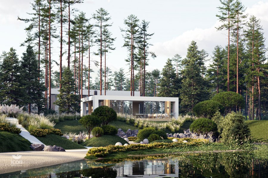 Студия ICON занимается проектированем ландшафта вокруг созданных по нашему проекту зданий,