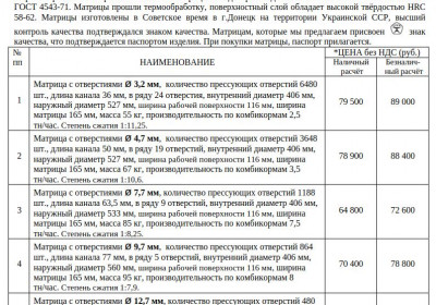 Матрицы для грануляторов Б6-ДГВ, ДГ-1 и Б6-ДГН с внутренним диаметром 406 мм, ширина рабочей поверхности 116 мм (Допуск +2 мм). Матрицы предназначены к эксплуатации совместно с обечайками с шириной рабочей поверхности 120 мм. Матрицы завода производителя изготовлены из стали 12Х2Н4А ГОСТ 4543-71. Матрицы прошли термообработку, поверхностный слой обладает высокой твёрдостью HRC 58-62. Матрицы изготовлены в Советское время в г.Донецк на территории Украинской ССР, высший контроль качества подтвержд...
