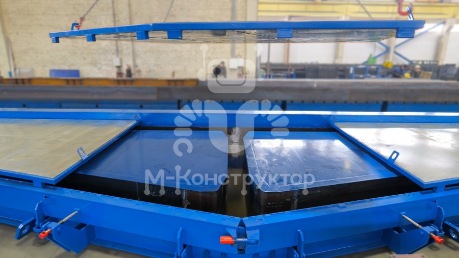Для ускоренного набора прочности форма оснащена паровой рубашкой и крышками из сэндвич-панелей, что позволяет стабильно выдерживать режим тепловой обработки и сокращать производственный цикл.
