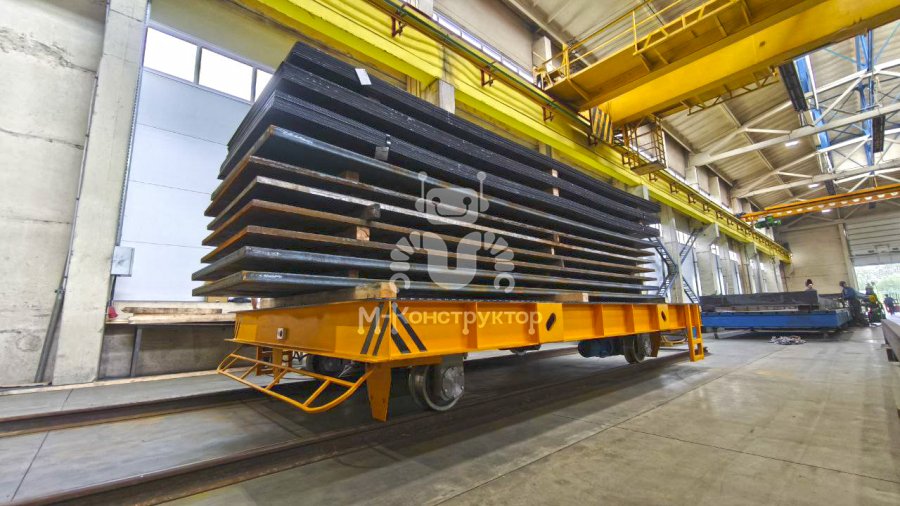 Компания "М-Конструктор" изготовит для вас надёжное звено логистики ЖБИ! Передаточная тележка грузоподъёмностью 40 тонн предназначена для безопасного и оперативного перемещения железобетонных изделий как внутри производственного цеха, так и на открытую площадку склада. Конструкция тележки рассчитана на интенсивную эксплуатацию в условиях тяжелых промышленных нагрузок, обеспечивая стабильную работу в рамках комплексных производственных циклов. Несущая рама из листового и фасонного проката служит прочной основой для всех узлов: ведущих и ведомых колёс, мотор-редукторов, электрооборудования и защитных элементов. Приводная система с асинхронными электродвигателями мощностью 2?5,5 кВт и редукторами гарантирует плавный ход и устойчивое движение при скорости до 40 м/мин. Управление возможно как с помощью радиопульта, так и со стационарного пульта, что повышает удобство и безопасность эксплуатации. Тележка оснащена защитными рамками с концевыми выключателями для аварийной остановки и светозвуковой сигнализацией. Габариты платформы (5545?3300 мм) позволяют транспортировать крупногабаритные изделия, а грузоподъёмность при распределённой нагрузке до 40 тонн делает её универсальным решением для предприятий ЖБИ. Использование передаточной тележки позволяет оптимизировать логистику внутри завода, сократить время на перемещение продукции и повысить общий темп выпуска изделий. Это надёжное решение, способное стать ключевым звеном в технологической цепочке современного производства.