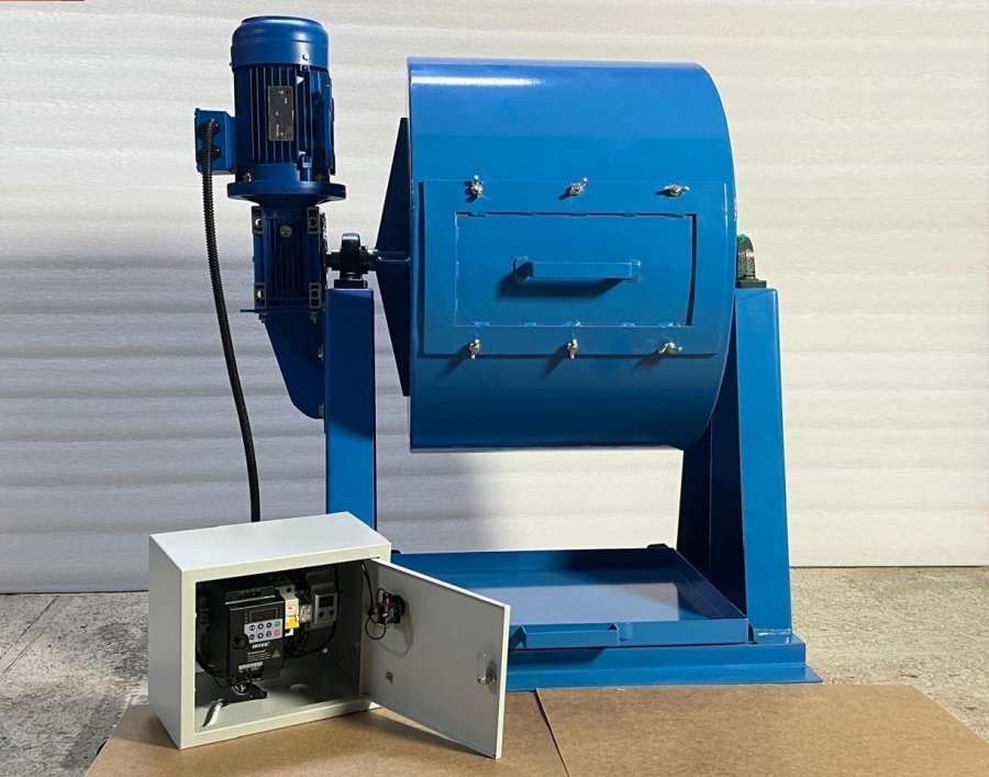Полочный барабан оснащен частотным преобразователем для управления скоростью вращения и программируемым реле времени (таймером).