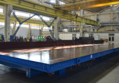 Допустимое значение отклонения формующей поверхности от плоскости – 1,5 мм на 3 метра. Допустимая нагрузка на стол – 1000 кг/кв. м. Поверхность стола выполнена из высокопрочной стали толщиной 10 мм, ширина поверхности может достигать 4 м, длина 12 м.
