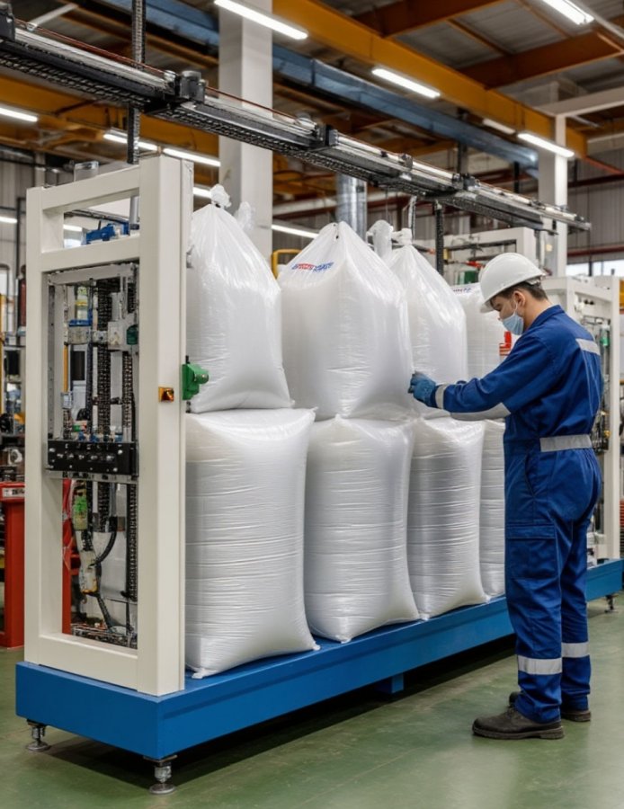 2. **Химическая промышленность**: В этой области мешки используются для упаковки опасных и неопасных химических веществ. Их устойчивая к химическим воздействиям структура обеспечивает безопасность при хранении и транспортировке.