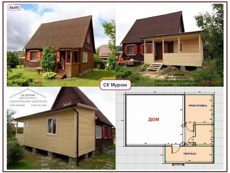 Пристройка к уже существующему дому позволяет решить вопрос увеличения полезной жилой площади в доме. Одним из направлений деятельности компании "СК МУРОМ" является реконструкция дачных строений. Часть наших работ по пристройкам можно посмотреть на сайте компании, который легко найти в любой поисковой системе, набрав название компании: СК МУРОМ