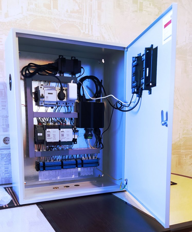 - модуль реле, который управляет подачей теплоносителя, включением вентиляторов, открытием/закрытием воздушных заслонок, циркуляционным насосом и пожарной сигнализацией