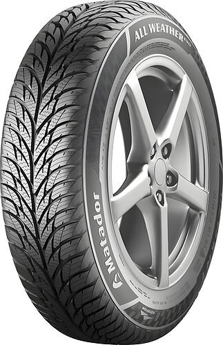 Всесезонная шина Matador MP-62 All Weather Evo предлагается в нескольких десятках типоразмеров диаметром от 13 до 17 дюймов. Характеризуется отменной для своего класса производительностью при любых погодных условиях, демонстрируя высокое тяговое усилие и эффективность при торможении на скользких покрытиях. Протекторный рисунок отличается массивностью плечевых блоков и их устойчивостью к деформации. На сухом покрытии это обеспечивает точность в управлении, а при маневрировании устойчивость к боковым скольжениям. Центральная часть содержит множество Z-образных ламелей, которые повышают продольное сцепление на скользком покрытии. Направленный симметричный дизайн содержит широкую продольную канавку посередине и расходящиеся от нее направленные против движения канавки. Такое решение до минимума снижает риск аквапланирования и слэшпленнинга. Основные особенности Matador MP-62 All Weather Evo - массивные плечевые блоки улучшают управляемость, препятствуют боковым сносам и неравномерности износа;