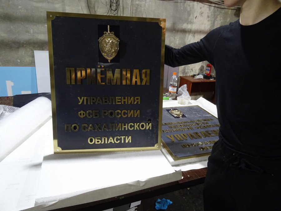 Таблички из латуни с объемными буквами. Все элементы таблички вырезаются отдельно на чпу станке после чего грунтуются, покрываются лаком и приклеиваюся. При креплении логотипов и букв из толстой латуни могут быть использованы винтовые крепежи с тыльной стороны таблички. Более подробную информацию можно получить на нашем сайте https://1nr.ru/uslugi/tablichki/relefnaya/
