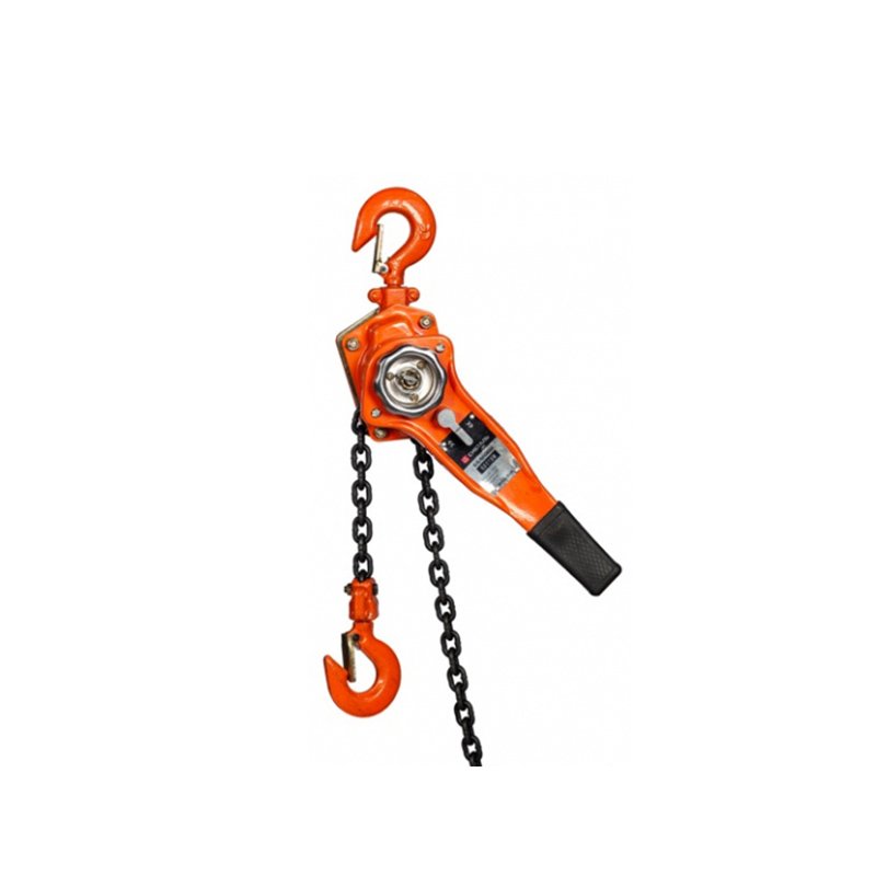 Механизм тали работает только под нагрузкой. Конструктивные особенности тали включают двухступенчатый редуктор, который снижает усилие на рычаг, а также автоматический дисковый тормоз с храповым механизмом, который блокирует груз при отпускании рычага. Крюки с защитными скобами предотвращают соскальзывание, обеспечивая дополнительную безопасность при работе.