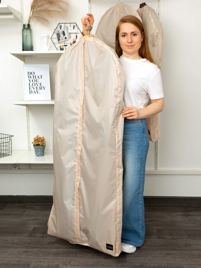 Тканевый чехол на молнии с водоотталкивающей пропиткой. Чехол изготовлен из таффеты рипстоп 210Т с ПУ пропиткой. Плотность материала 65 г/м2. Без прозрачных "окошек", без ручек. Чехол предотвращает сминание вещей, оберегает от пыли, брызг и загрязнений. Область применения - хранение и транспортировка одежды. Подходит для повседневной и деловой одежды, а также для концертных, танцевальных и спортивных костюмов. С учётом плечиков длина вещи должна быть на 5-7 см короче чехла. Условия эксплуатации и уход: рекомендуется ручная стирка в холодной воде, отпаривание с наружной стороны изделия, чтобы не повредить слой водоотталкивающей пропитки. Предназначено для бытового использования. Срок службы не ограничен.