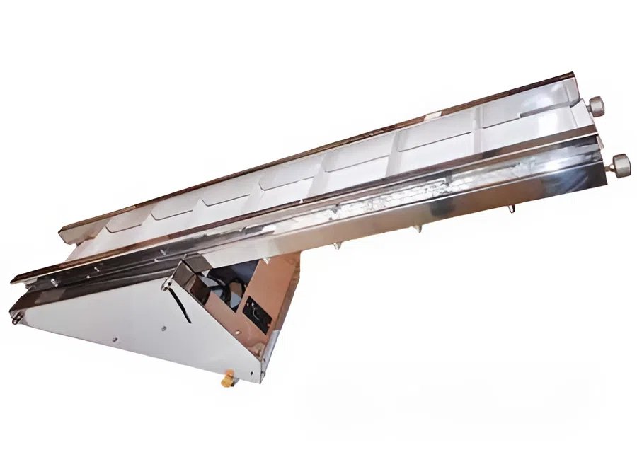 Транспортер для отвода готовой продукции (пакетов) от фасовочно-упаковочных автоматов. Ширина конвейерной ленты 20 см.