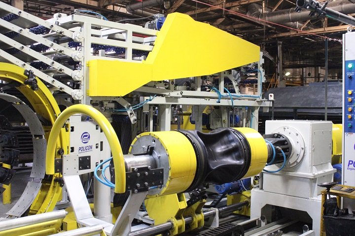 Новое оборудование дает возможность собирать в сутки до 430 шин посадочным диаметром 20 дюймов и шириной профиля от 9 до 12 дюймов. Монтаж механизма, его настройка и доведение до требуемых параметров, позволяющих выдавать шины необходимого качества, заняли порядка трех месяцев. Этот современный и точный станок соответствует стандартам производства и позволяет выпускать разные модели шин радиальной конструкции с более низким риском перекоса металлокордного брекера.