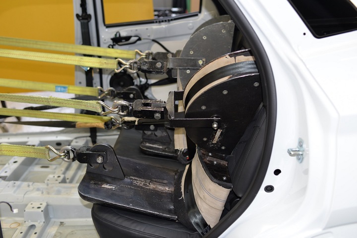 В ходе испытаний на крепления задних ремней подавалось суммарное усилие 9 тонн в течение 2 секунд — при том, что нормативы требуют выдержки нагрузки лишь 0,2 секунды. Таким образом, инженеры смоделировали условие, в 10 раз превышающее обязательные требования. Результаты показали: ремни выдерживают усилие, значительно превосходящее предписания Правил R14, а точки крепления деформировались минимально.