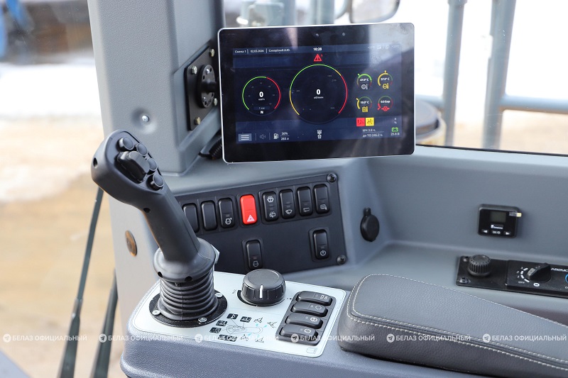 Инженеры БЕЛАЗа также сделали акцент на маневренности: при массе в 50 тонн машина развивает транспортную скорость до 35 км/ч и эффективно работает как на обширных площадях, так и в стесненных условиях карьеров. Запас хода обеспечивает топливный бак объемом 715 литров.