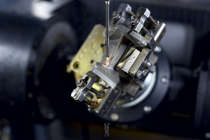 Российская гибридная лазерно-эрозионная установка позволяет в автоматическом режиме создавать в сопловых и рабочих лопатках турбин перфорационные отверстия с заданными параметрами. Функция предварительной лазерной обработки удаляет с поверхности лопатки защитное керамическое покрытие с последующим прожигом отверстий методом электроэрозионного фрезерования. Его принцип заключается в «вырывании» частиц материала с поверхности лопатки импульсом электрического разряда.
