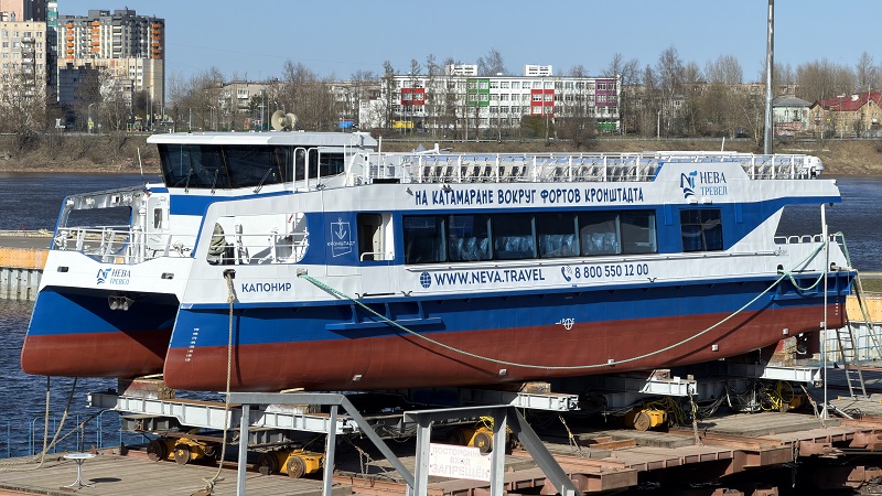На Средне-Невском судостроительном заводе (СНСЗ, входит в ОСК) состоялись церемонии спуска на воду и крещения четвертого экскурсионно-прогулочного пассажирского катамарана проекта 04710 «Соммерс». Судно получило имя «Капонир».
