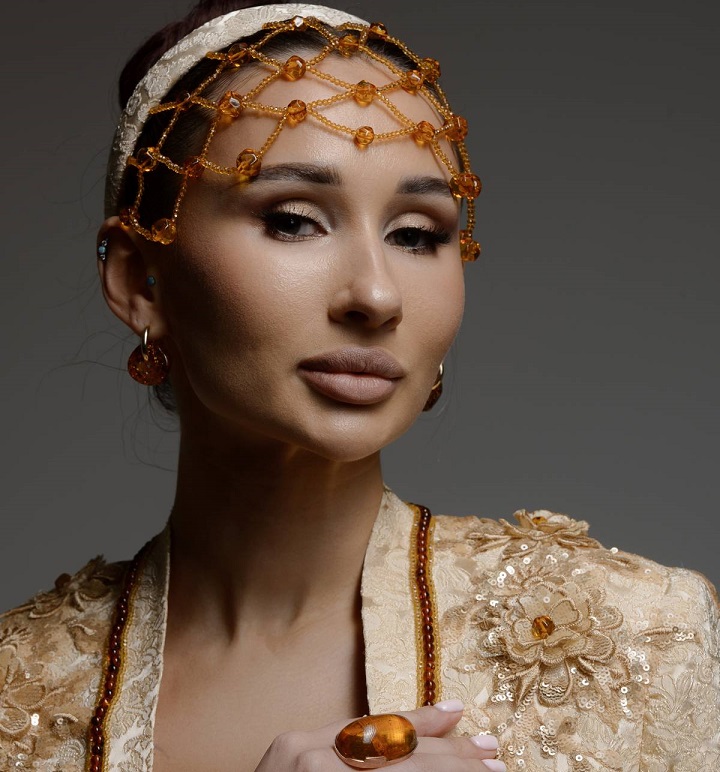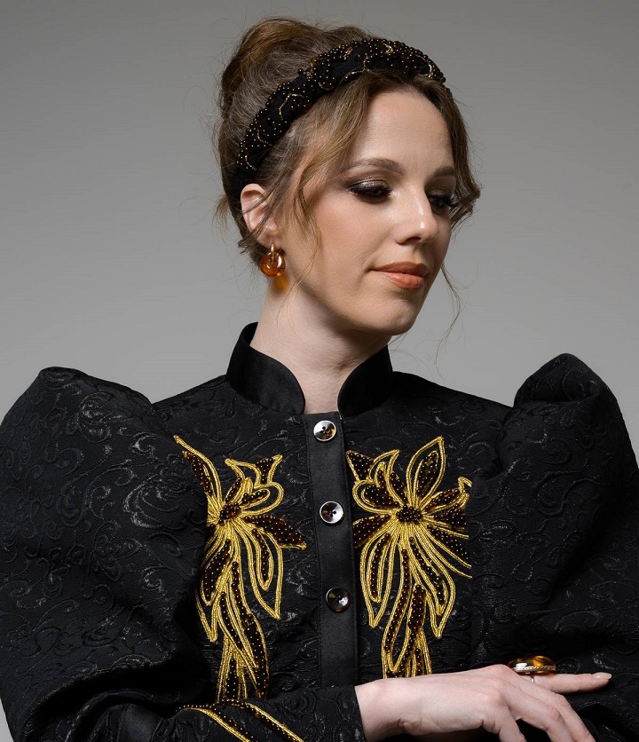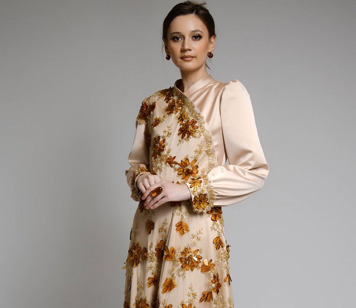 Центральным образом коллекции стало уникальное вечернее платье. Для его создания потребовалось 1300 янтарных элементов. Все детали закреплены на ткани вручную. Работа над платьем продолжалась более ста часов.