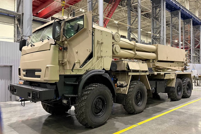 - Оперативная мобильность: Сокращенное до 6 количество направляющих на шасси 8×8, по сравнению с 12 у систем аналогичного калибра, существенно повысило подвижность и динамику машины без ущерба для огневой мощи. Полный залп выполняется за 18 секунд.