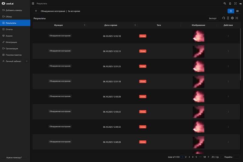 - Обнаружение возгораний на ранних стадиях с моментальным оповещением.