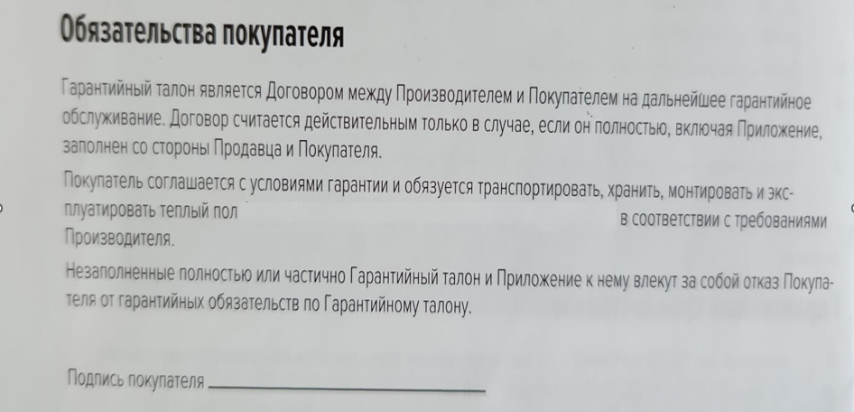 Здесь наблюдаем, как производитель письменно вводит в заблуждение покупателя, пытаясь снять с себя ответственность, в случае незаполненного гарантийного талона. Отказ покупателя от гарантийных обязательств — это попытка производителя уйти от обязательств.