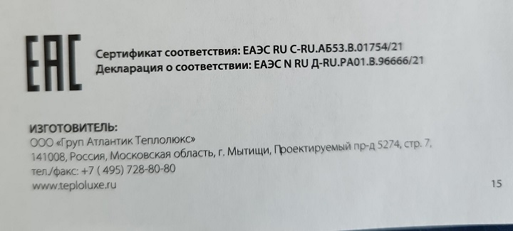 Здесь наблюдаем позитивный пример наличия номера действующего сертификата соответствия и, дополнительно, Декларации о соответствии.