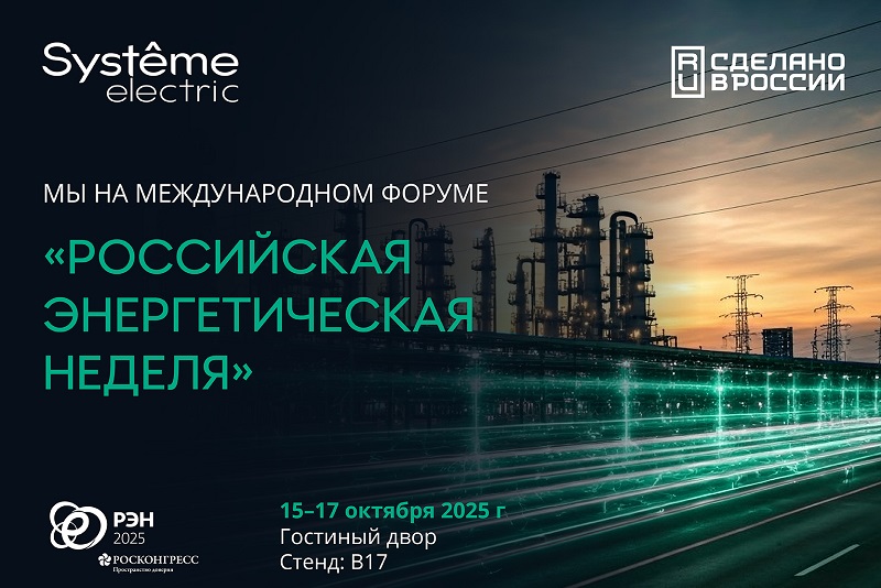 Выставка РЭН-2025 пройдет по адресу: Москва, ул. Ильинка, 4, Гостиный двор. Стенд «Систэм Электрик» № B17. Регистрация обязательна.