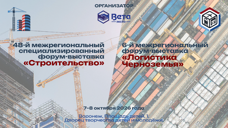 7–8 октября 2026 года в Воронеже состоятся два масштабных отраслевых события: 48-й межрегиональный специализированный форум-выставка «Строительство» и 6-й межрегиональный форум-выставка «Логистика Черноземья». Оба мероприятия пройдут на одной площадке — во Дворце творчества детей и молодежи (г. Воронеж, Площадь детей, 1). Организаторами выступают Выставочный Центр «ВЕТА» ТПП ВО и Союз «Торгово-промышленная палата Воронежской области».