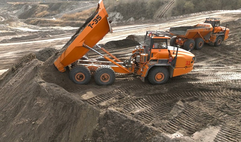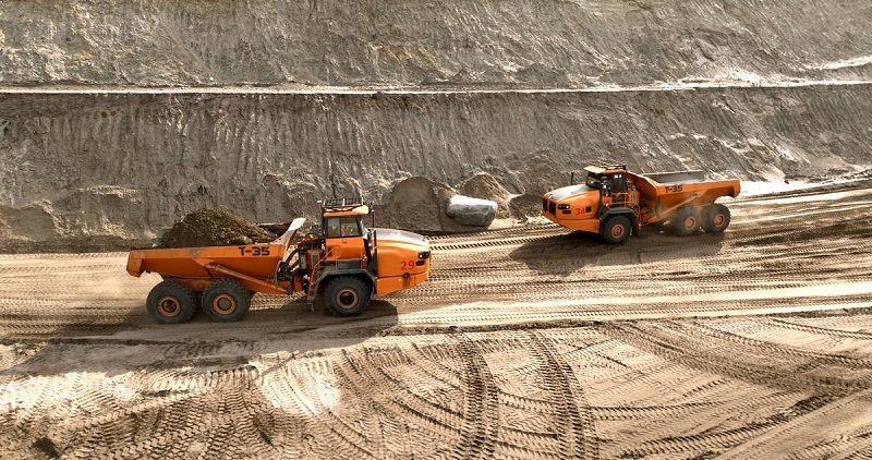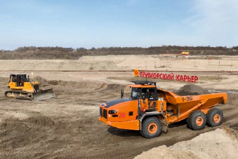 Напомним, Приморское месторождение в Калининградской области — крупнейшее в мире. Балтийский янтарь залегает под слоем породы на глубине до 50 метров. Чтобы добраться до него, необходимо удалить и переместить грунт в выработанную часть карьера — для этого и нужна специальная техника.
