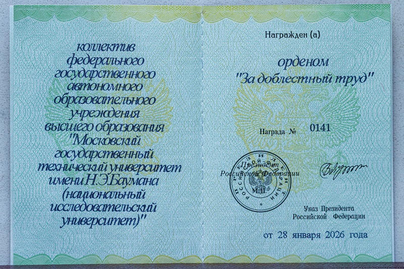 Высокой чести коллектив Бауманки удостоился согласно указу, подписанному Президентом России Владимиром Путиным в январе 2026 года, — орден «За доблестный труд» за большой вклад в развитие науки и образования, подготовку высококвалифицированных специалистов.