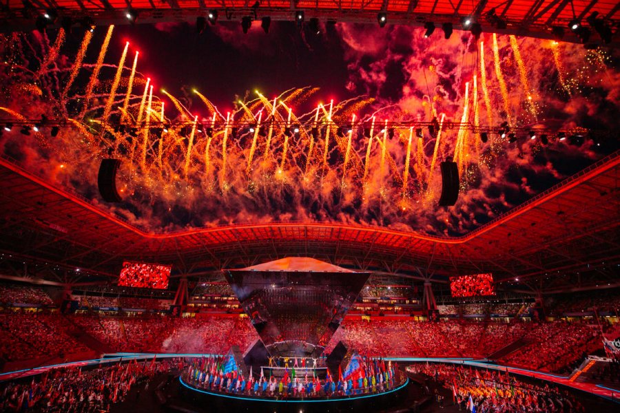 Церемония открытия чемпионата на стадионе Казань Арена продлилась более двух часов. В программе - парад 63 сборных команд, феерическое шоу с элементами дополненной реальности и светового меппинга.