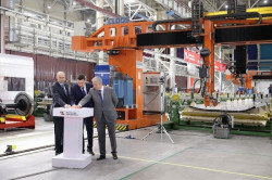 На заводе «Уральские локомотивы» (г. Верхняя Пышма) стартовало производство первого российского высокоскоростного электропоезда. На участке сборки-сварки кузовов производства поездов произведена сварка первого шва кузова вагона высокоскоростного электропоезда из экструдированного алюминиевого профиля. В режиме телемоста первый вице-премьер Правительства РФ Виталий Савельев дал старт производст...